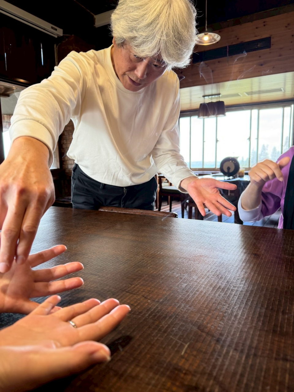 リトリートでは3つの特徴のあるお茶会、頭皮マッサージ、絶景テラスでの気功体験などをさせていただきました。