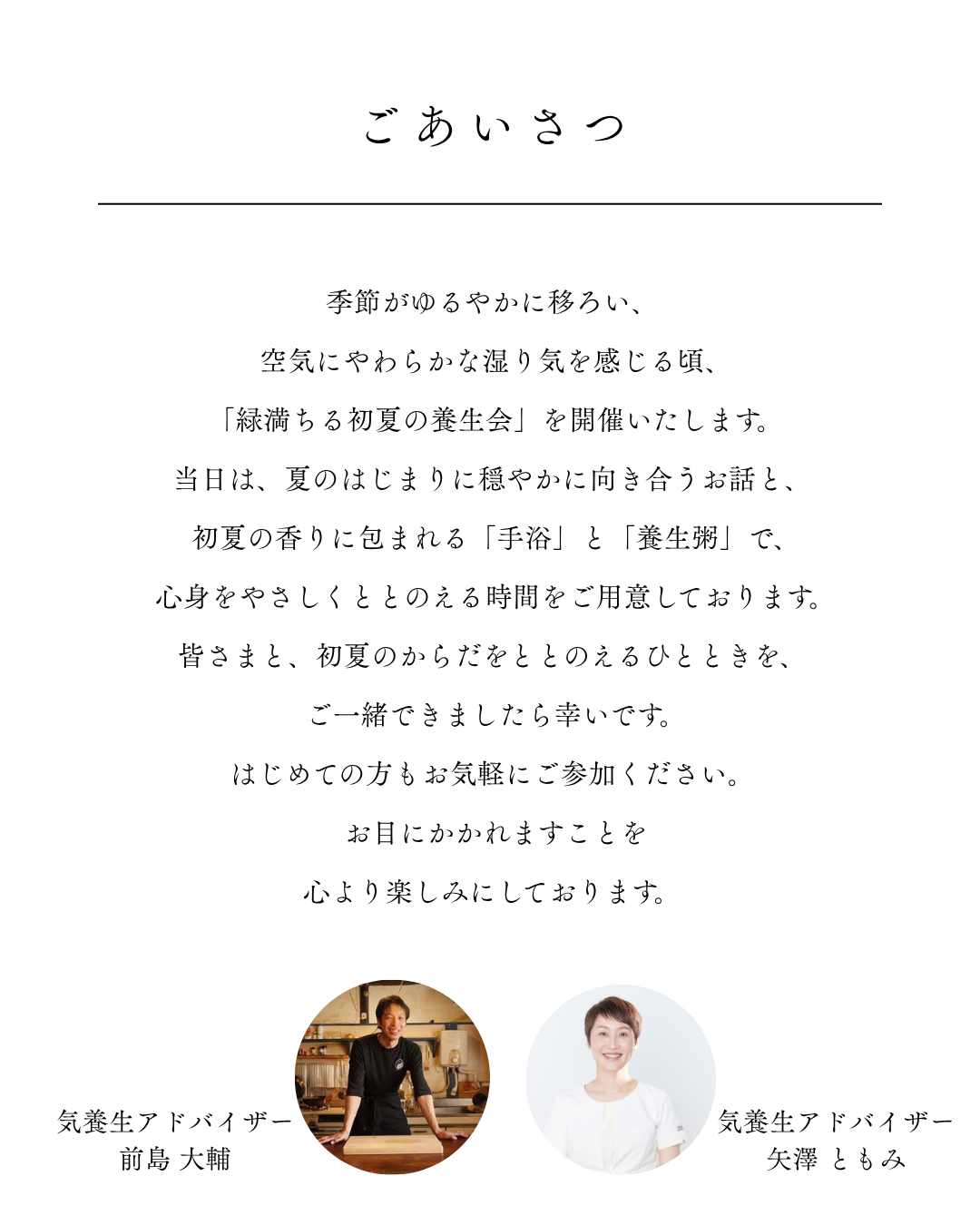 ▼お申込みはコチラから⇒初夏の養生会お申込フォーム